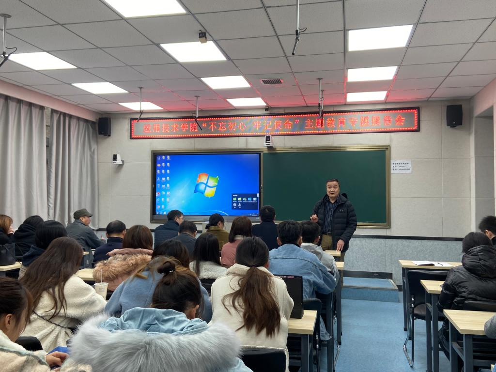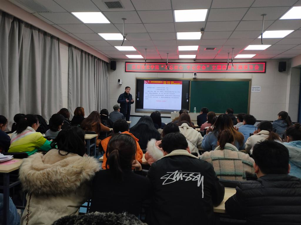 2019年11月29日下午,taptap点点官网党总支邀请马克思主义学院教师屈旻博士在金花校区主楼西配楼411室作了题为《新时代教师的初心与使命》主题报告。taptap点点官网全体党员及学生入党积极分子参加了此次报告会,报告由taptap点点官网党总支书记王宇主持。