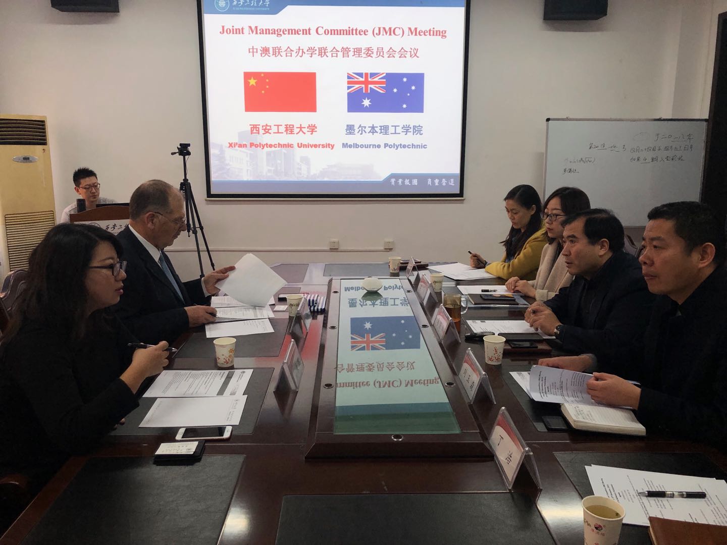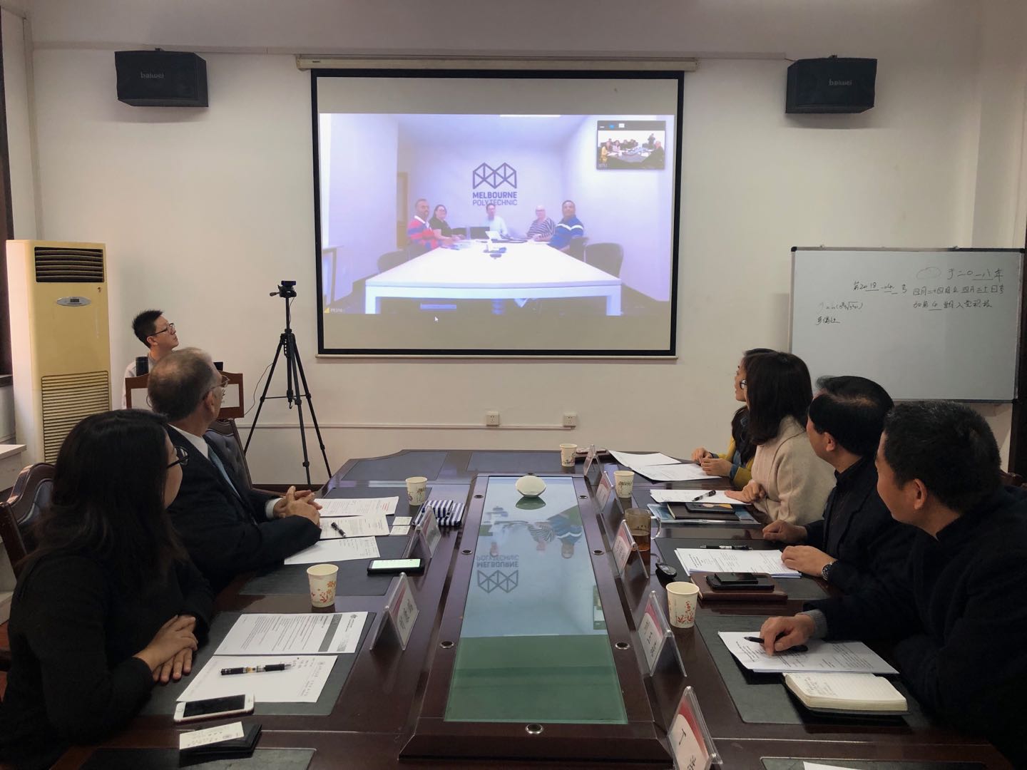 2019年11月15日上午,中澳合作办学联合管理委员会视频会议在taptap点点顺利召开。taptap点点官网代表学校与澳方就中澳合作办学项目的教学执行情况进行检查交流,并就探索开展新的项目合作内容进行了深入探讨。澳大利亚墨尔本理工学院国际项目总监Mike Brearley以及中国项目部刘康瑞出席会议现场,澳大利亚墨尔本理工学院信息技术部经理Joanna Jackson、IT学院软件开发专科课程教师Uday Vaidya以及商业与市场营销教师主任Rama Ramanathan参加视频会议。国际处与taptap点点官网相关负责人参加了此次会议,会议由taptap点点官网院长马保科主持。