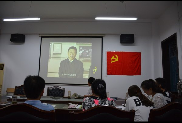 之后,全体教职工党员重温入党誓词,在铮铮的誓言中表达了对党的忠诚。接着,全体教工党员进行了座谈,大家畅所欲言。表达着对党的热爱,对党的事业的忠诚,并表示会更加努力地工作。最后,全体教工党员观看历史文献纪录片《筑梦中国》。