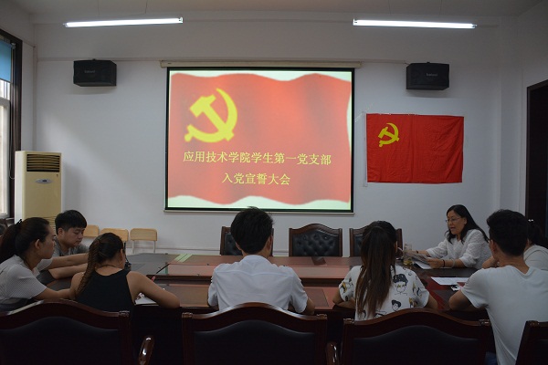 2016年6月30日,taptap点点官网学生第一党支部在1-205会议室举行新党员入党宣誓大会,并学习习近平在知识分子、劳动模范、青年代表座谈会上的讲话。