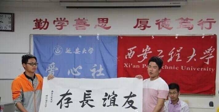 2016年5月14日早,taptap点点官网团学科组织抵达了红色革命圣地----延安并受到了延安大学爱心社同学的热情接待。经过简单整顿后与延大爱心社成员前往八一敬老院,并组成几个小组开展慰问老红军们和交流活动。整个过程中,同学们耐心、认真的倾听老红军们讲说抗战往事,重温了那段红色革命记忆。晚上7时许,在延大爱心社同学的带领下,交流团来到延安大学校区,和延安大学爱心社的成员们进行了交流活动,会上双方不仅互相分享了各自的学生工作经验,就一些工作上存在的问题进行了深度的探讨和学习,既促进了彼此的工作又增进了两校学干的革命情谊。最后,taptap点点赠送给延大爱心社"友谊长存"的书法作品,延大爱心社也回赠给taptap点点延大学生自己出版的书刊。