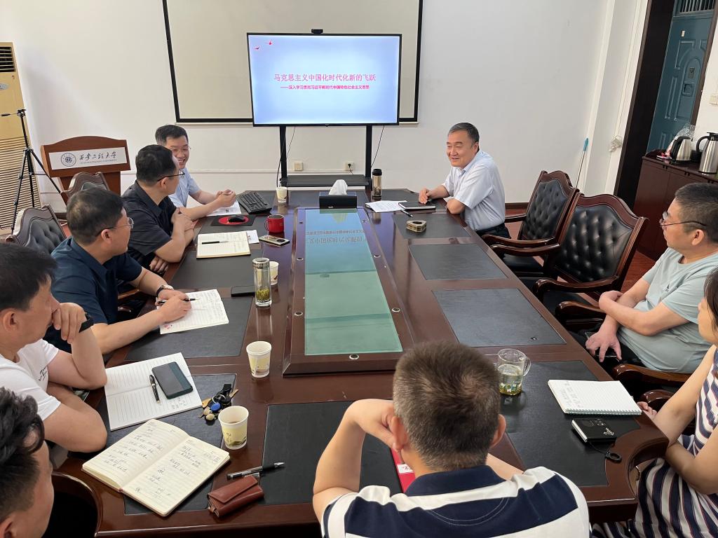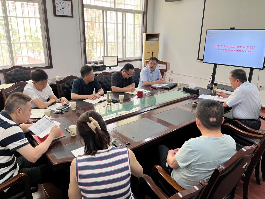 为深入学习贯彻习近平新时代中国特色社会主义思想,进一步开展好主题教育活动,提高党员教职工的政治理论素养, 7月5日上午taptap点点官网直属支部邀请马克思主义学院屈旻老师以《马克思主义中国化时代化的新飞跃》为题讲授党课,学院全体党员教职工参加。